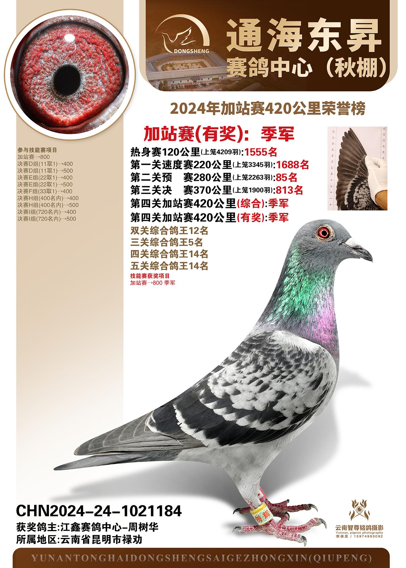 云南通海东昇赛鸽中心2024年加站赛420公里荣誉榜