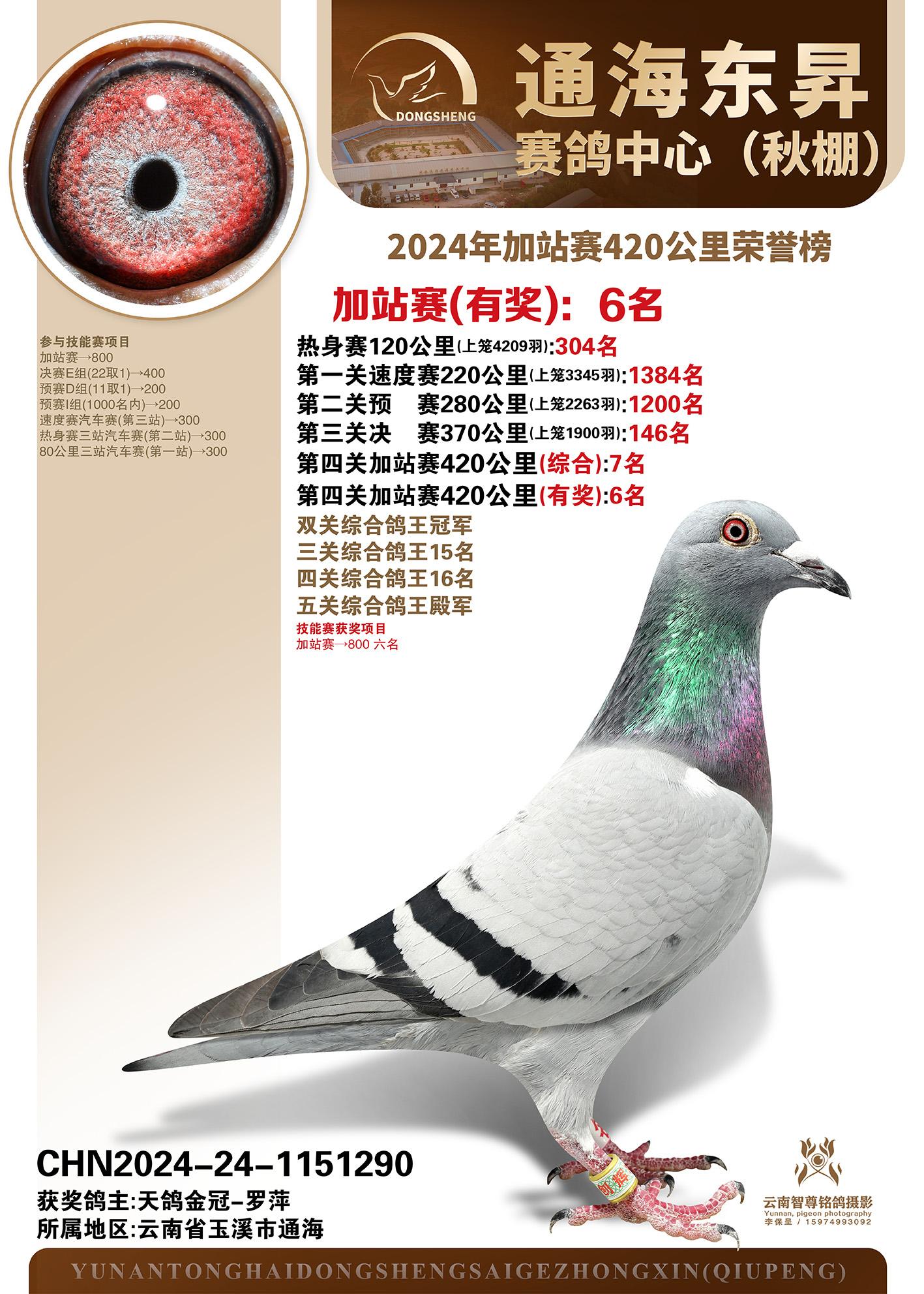 云南通海东昇赛鸽中心2024年加站赛420公里荣誉榜