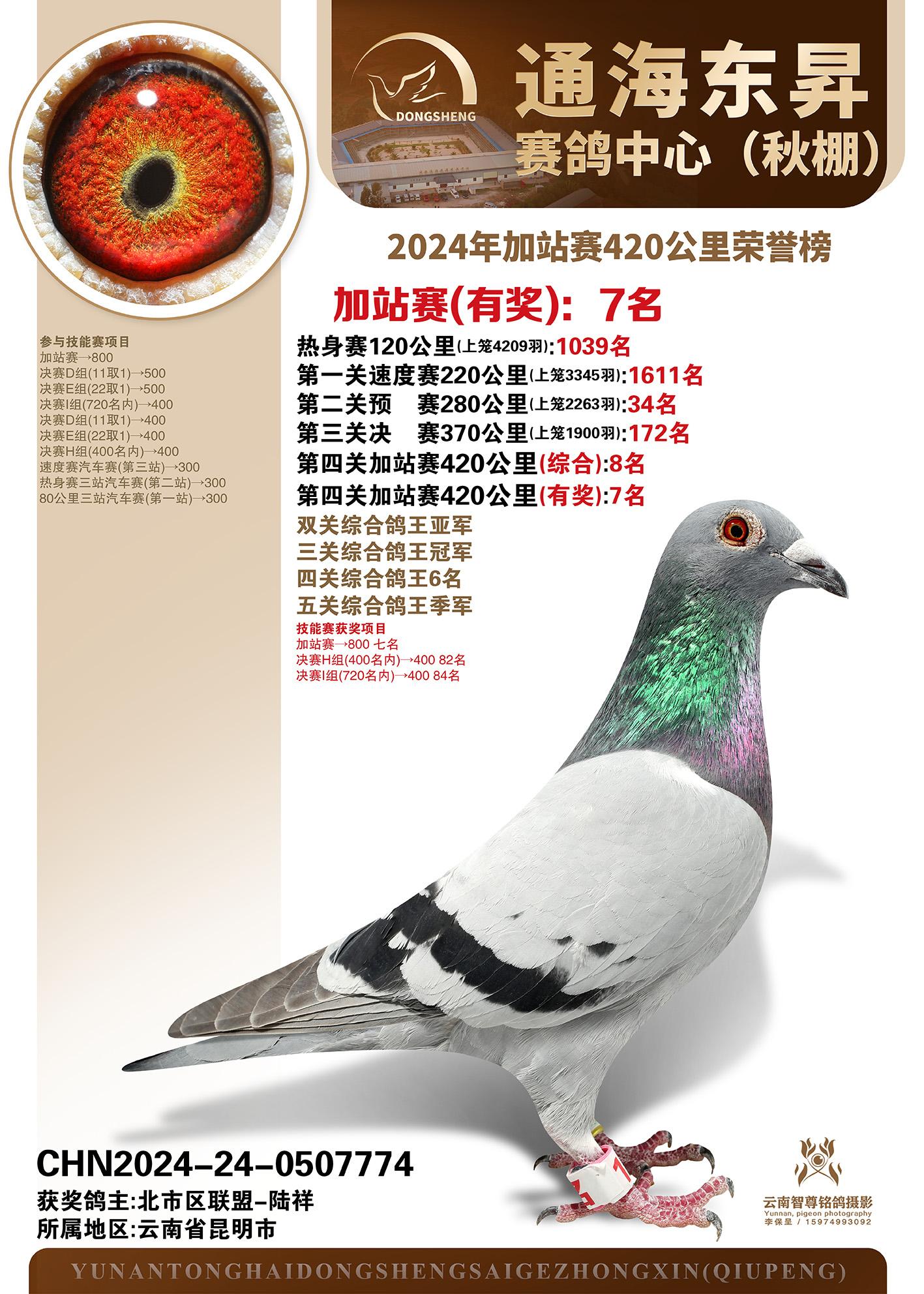 云南通海东昇赛鸽中心2024年加站赛420公里荣誉榜