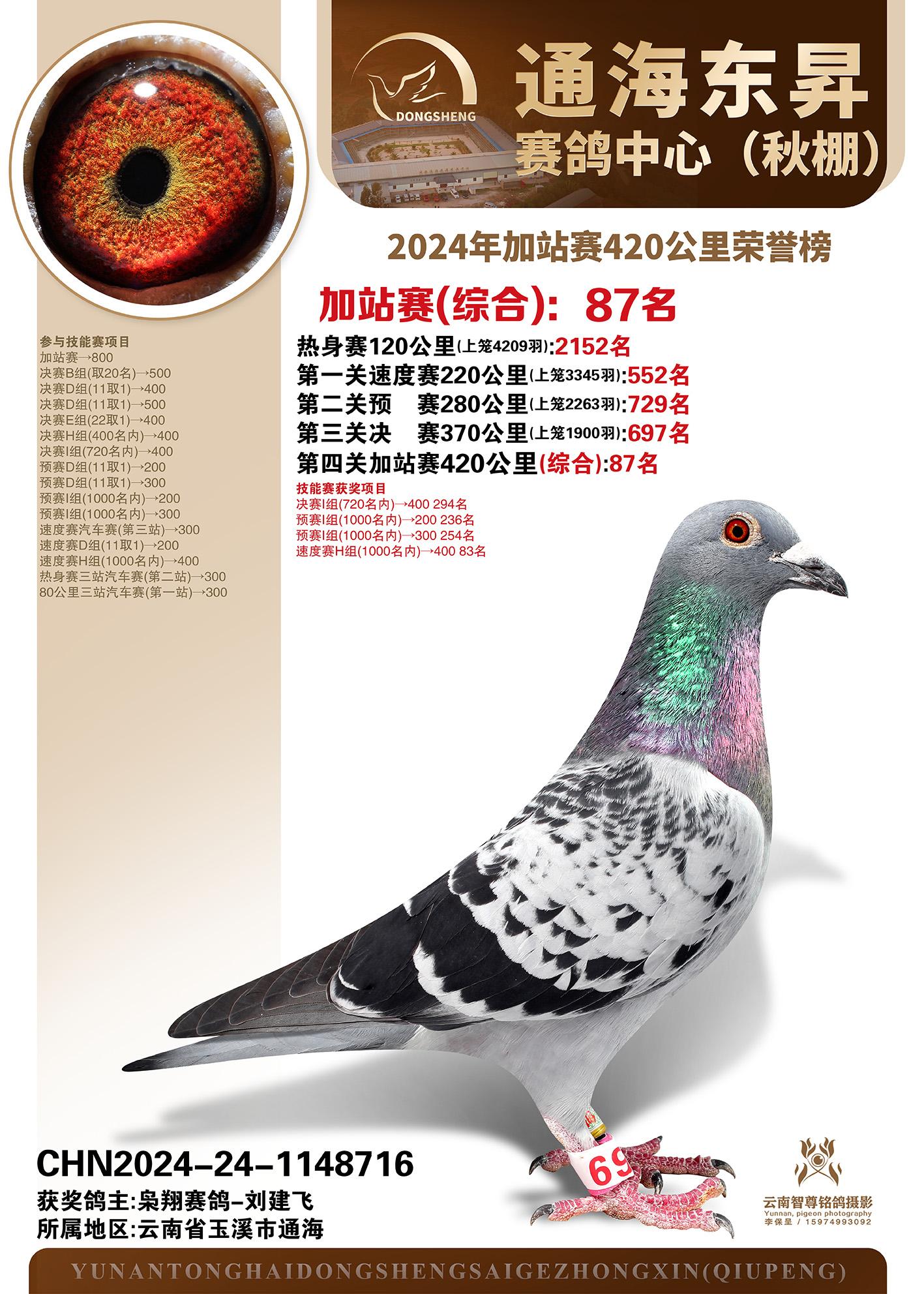 云南通海东昇赛鸽中心2024年加站赛420公里荣誉榜
