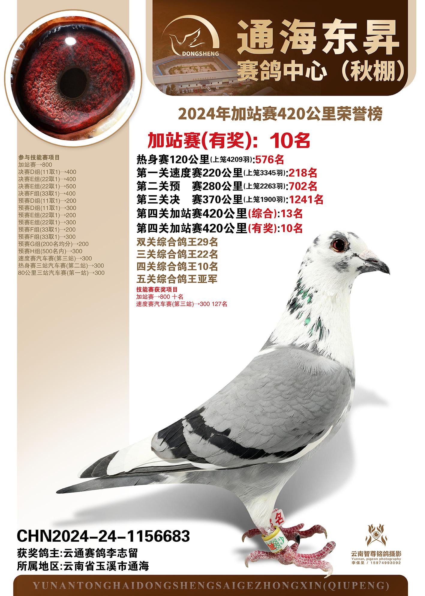 云南通海东昇赛鸽中心2024年加站赛420公里荣誉榜