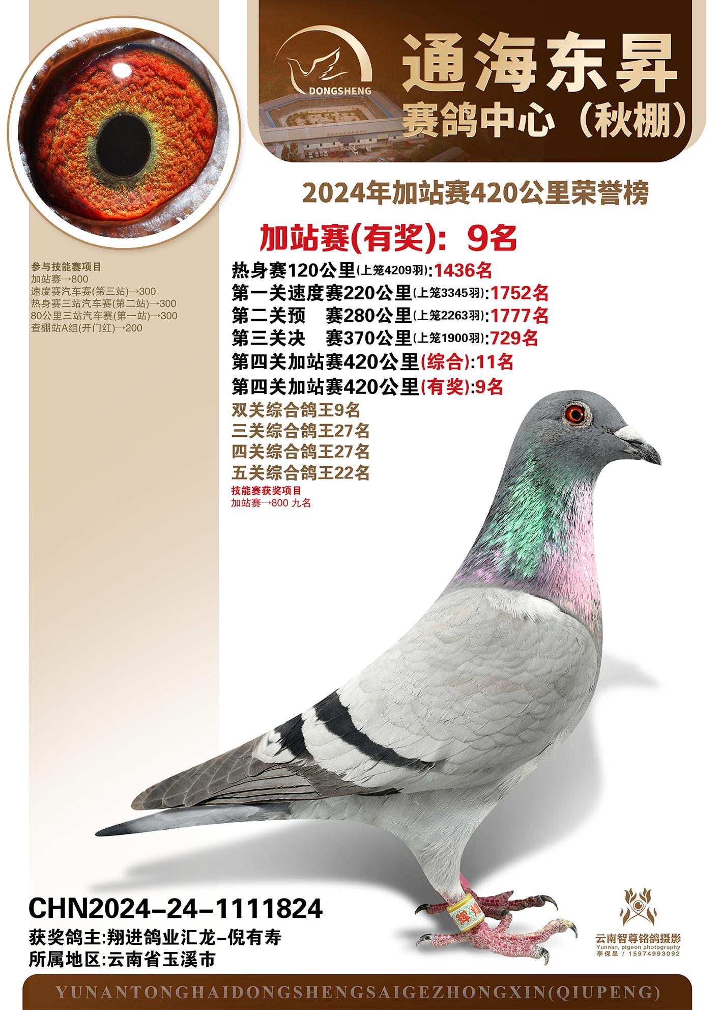 云南通海东昇赛鸽中心2024年加站赛420公里荣誉榜