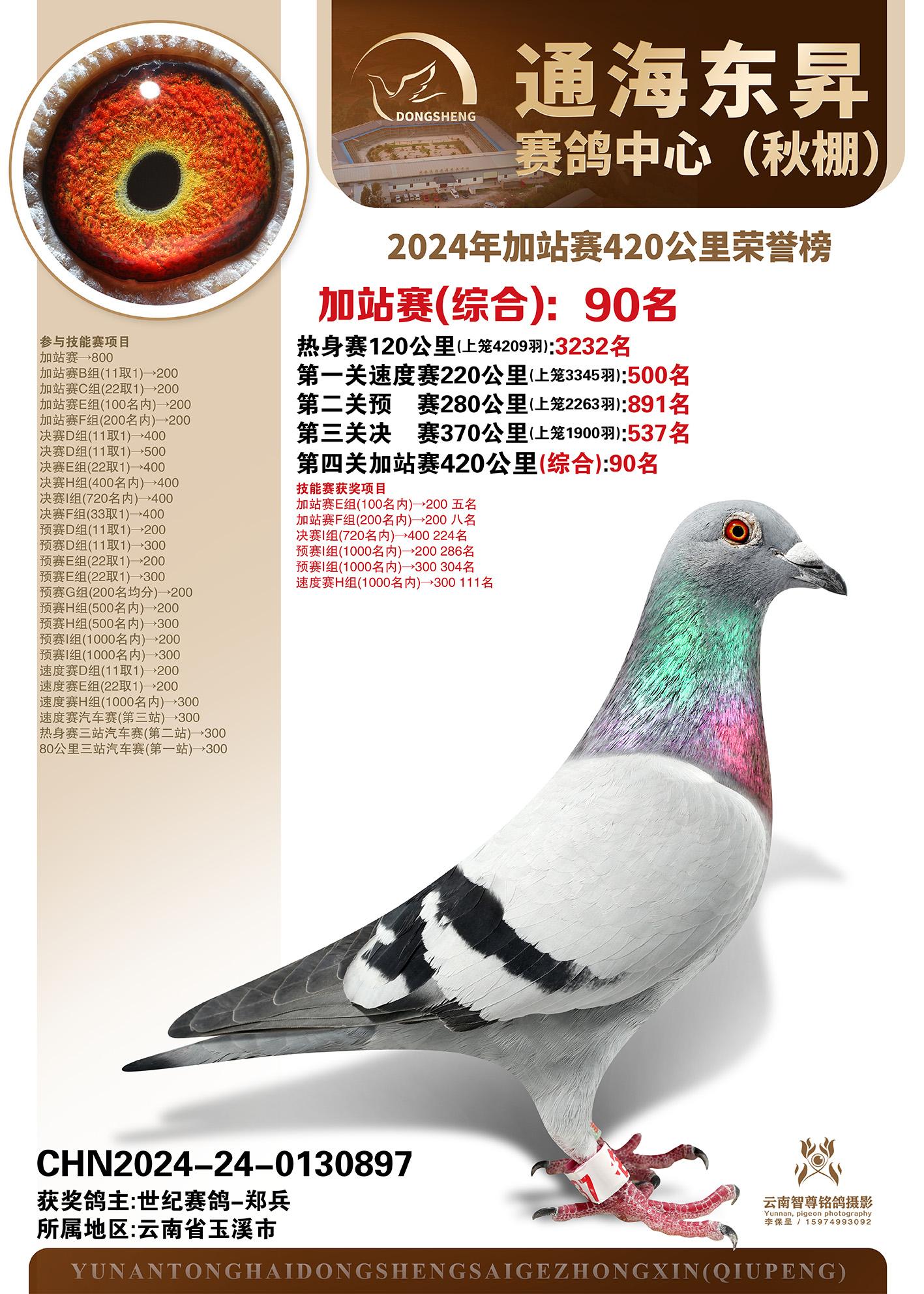 云南通海东昇赛鸽中心2024年加站赛420公里荣誉榜