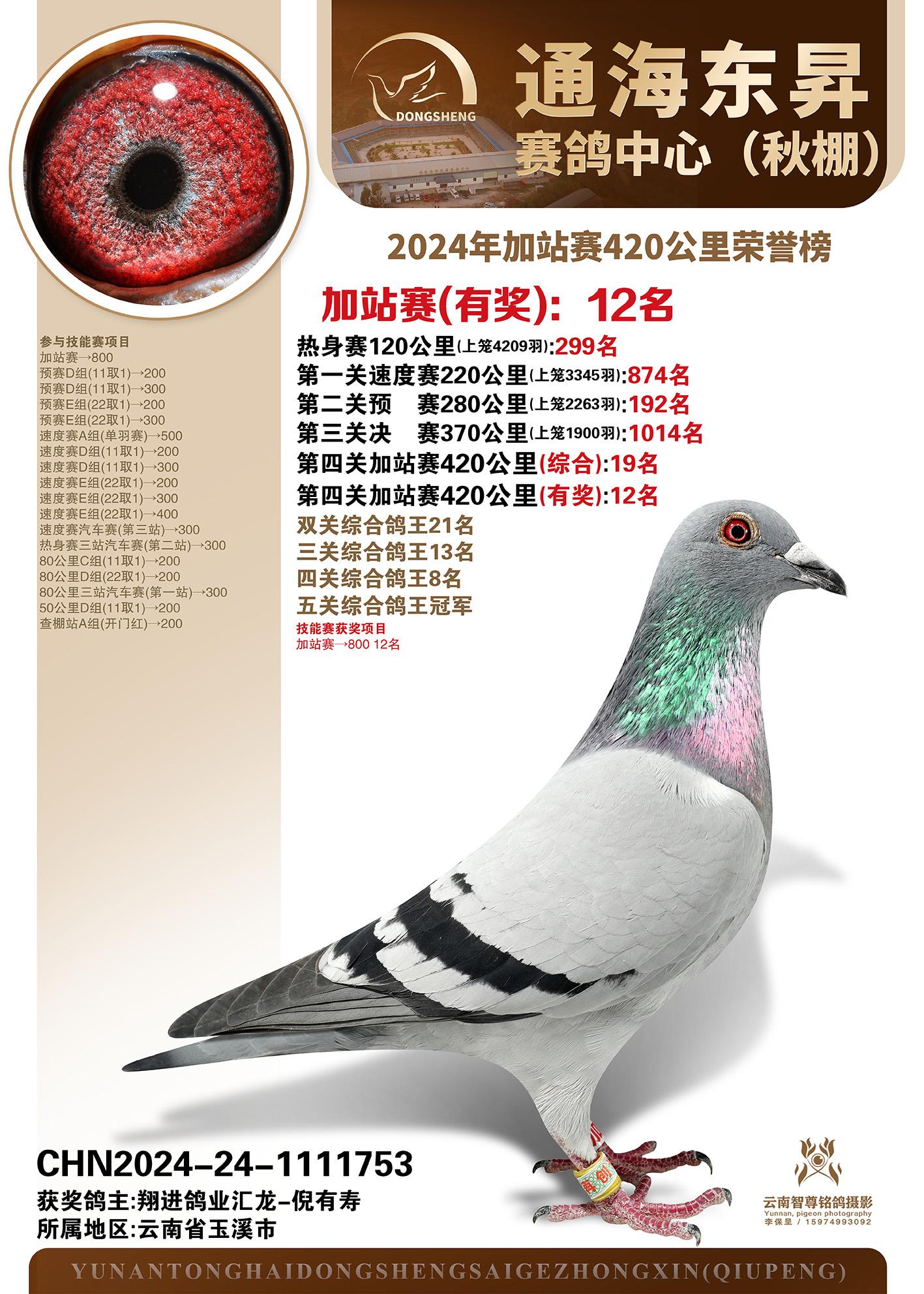 云南通海东昇赛鸽中心2024年加站赛420公里荣誉榜