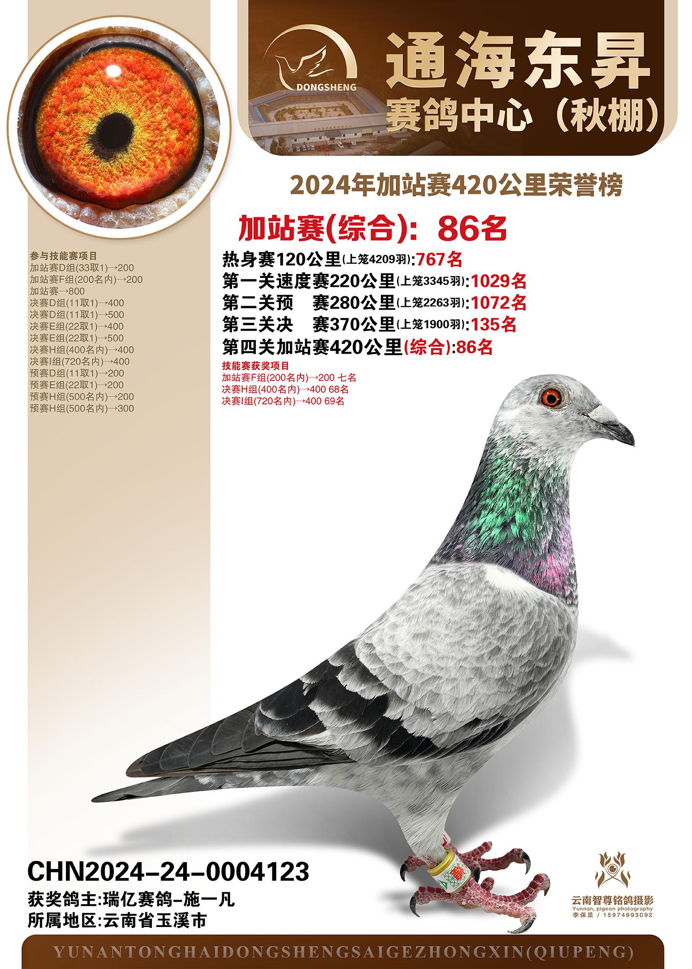 云南通海东昇赛鸽中心2024年加站赛420公里荣誉榜
