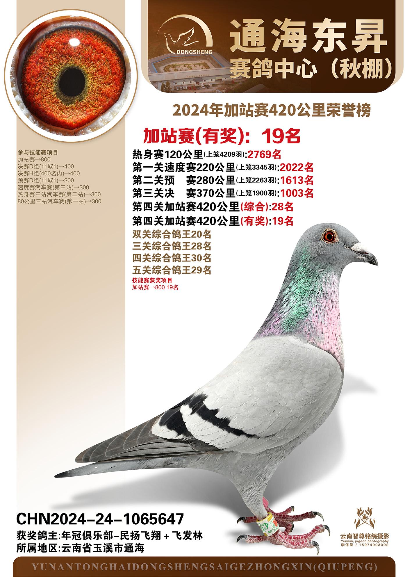 云南通海东昇赛鸽中心2024年加站赛420公里荣誉榜