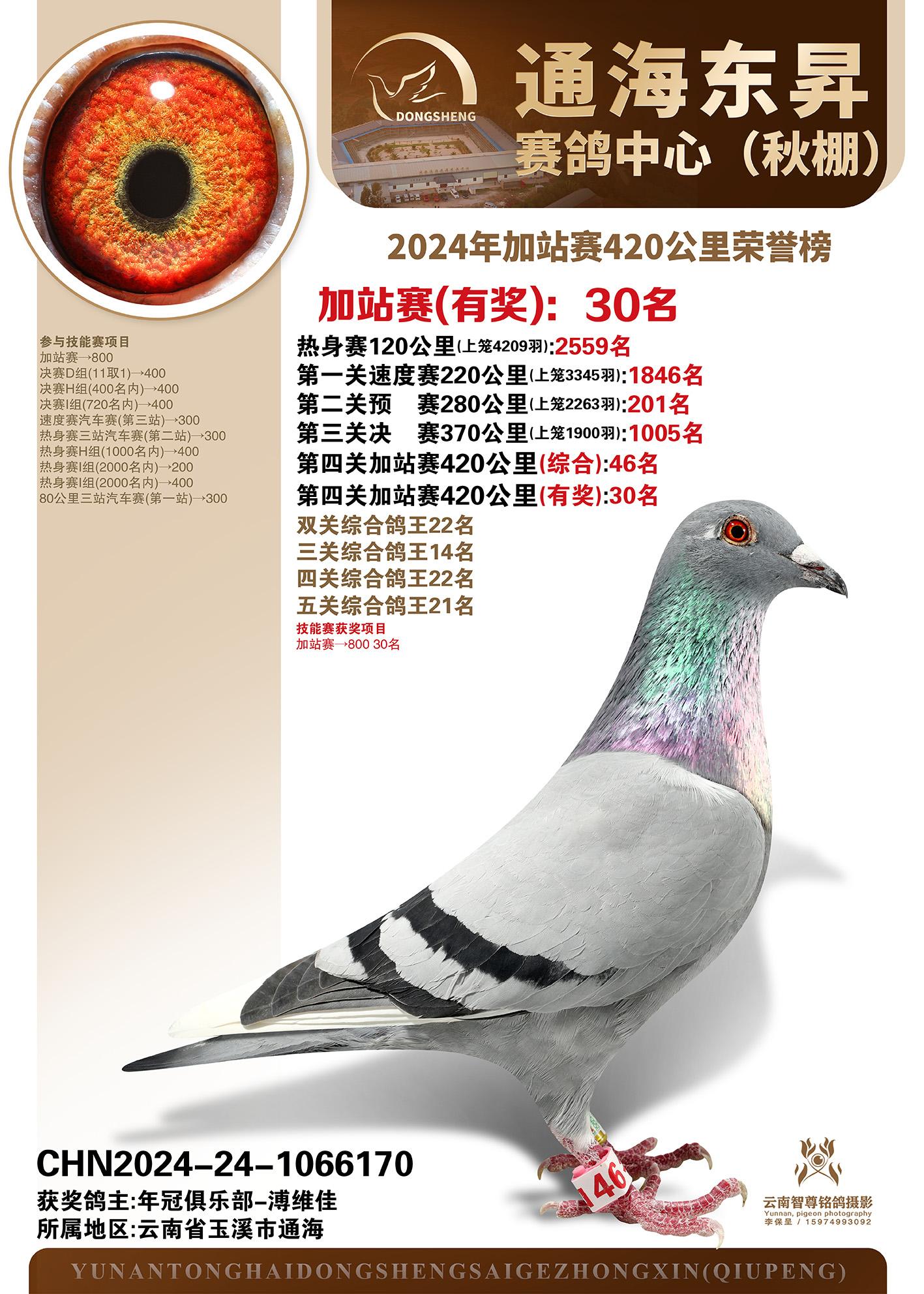 云南通海东昇赛鸽中心2024年加站赛420公里荣誉榜