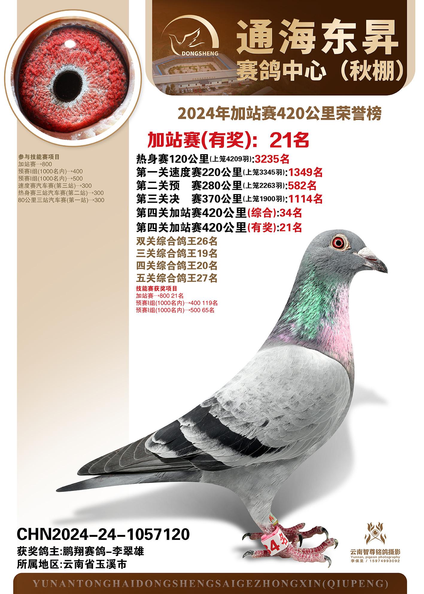 云南通海东昇赛鸽中心2024年加站赛420公里荣誉榜