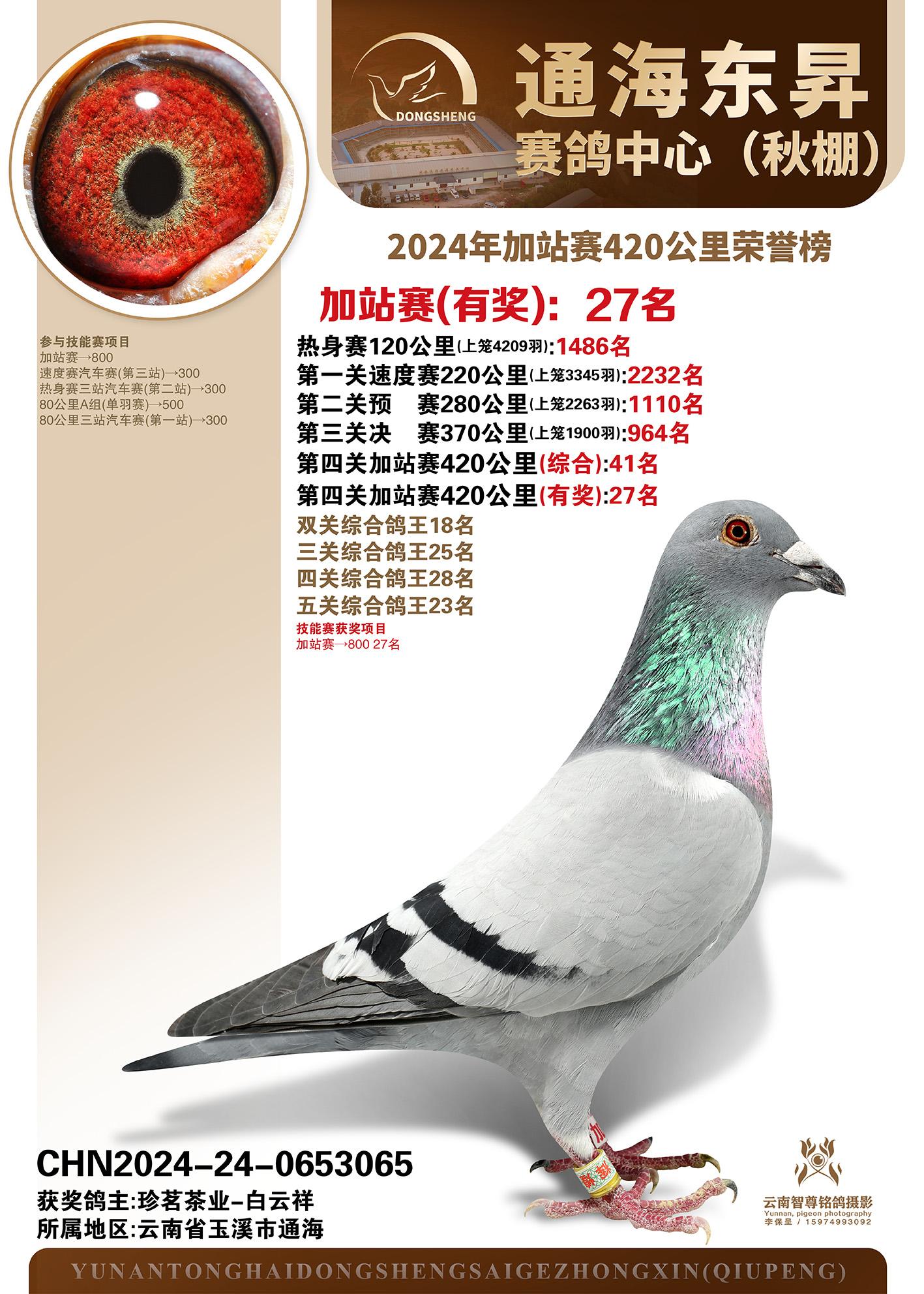 云南通海东昇赛鸽中心2024年加站赛420公里荣誉榜