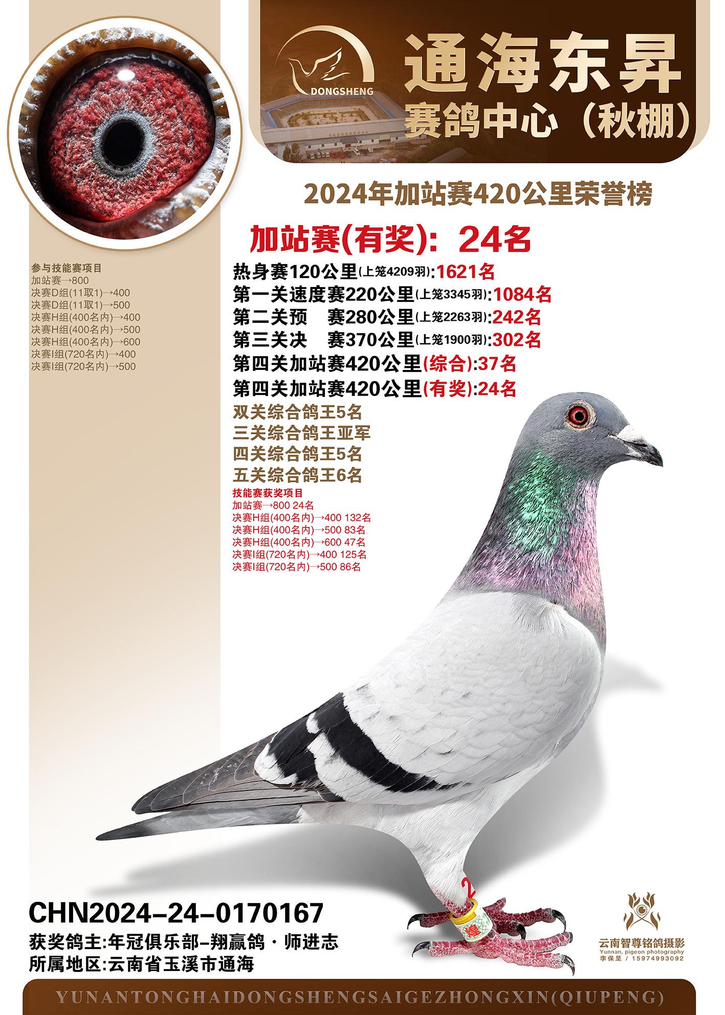 云南通海东昇赛鸽中心2024年加站赛420公里荣誉榜