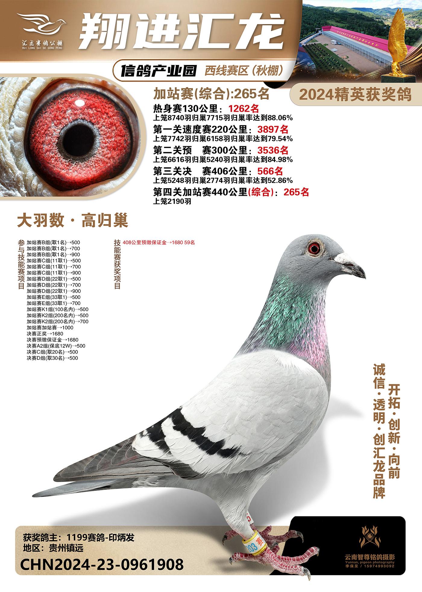 云南楚雄翔进汇龙西线赛区2024精英获奖鸽