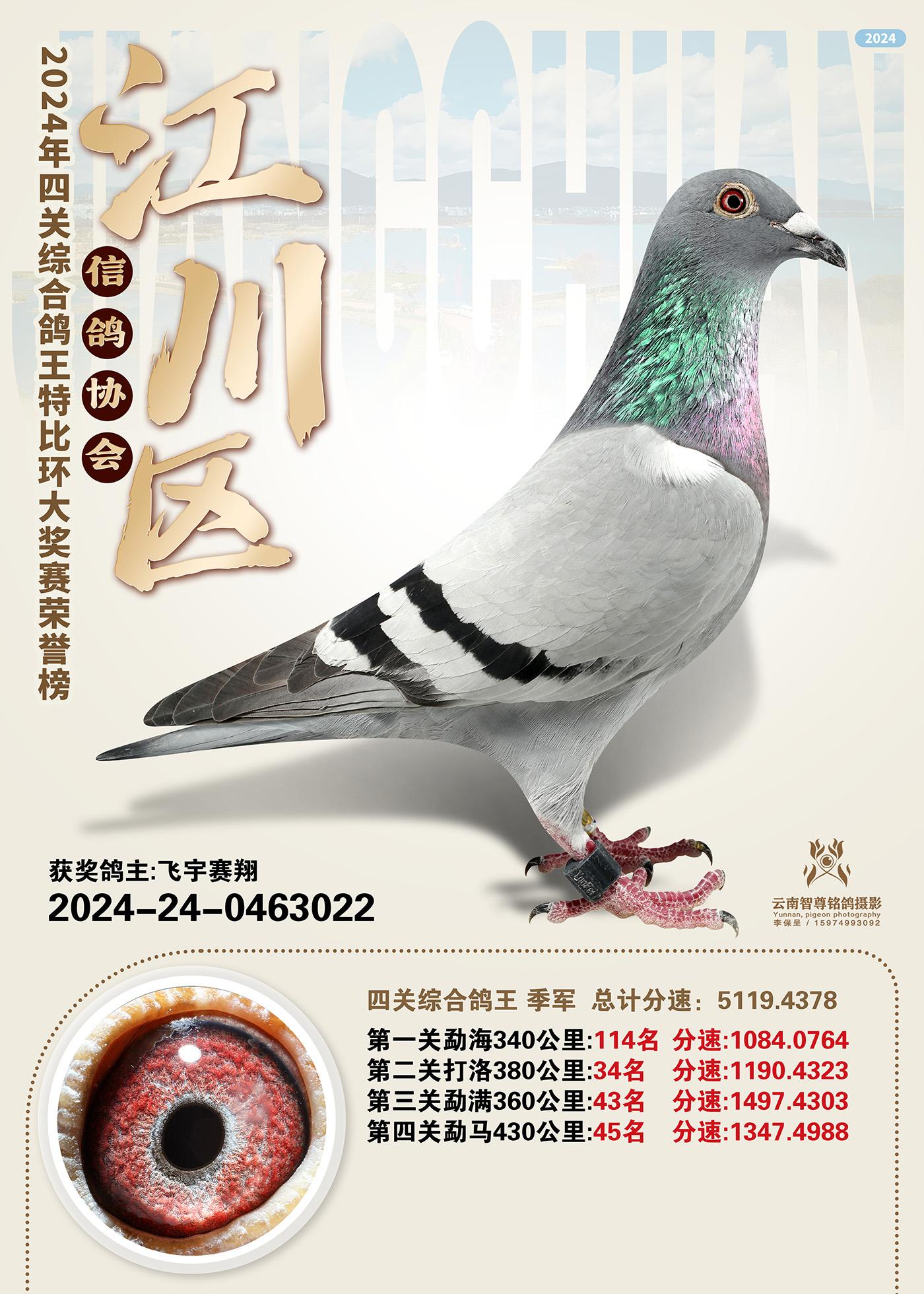 江川区信鸽协会2024年4关综合鸽王特比环大奖赛