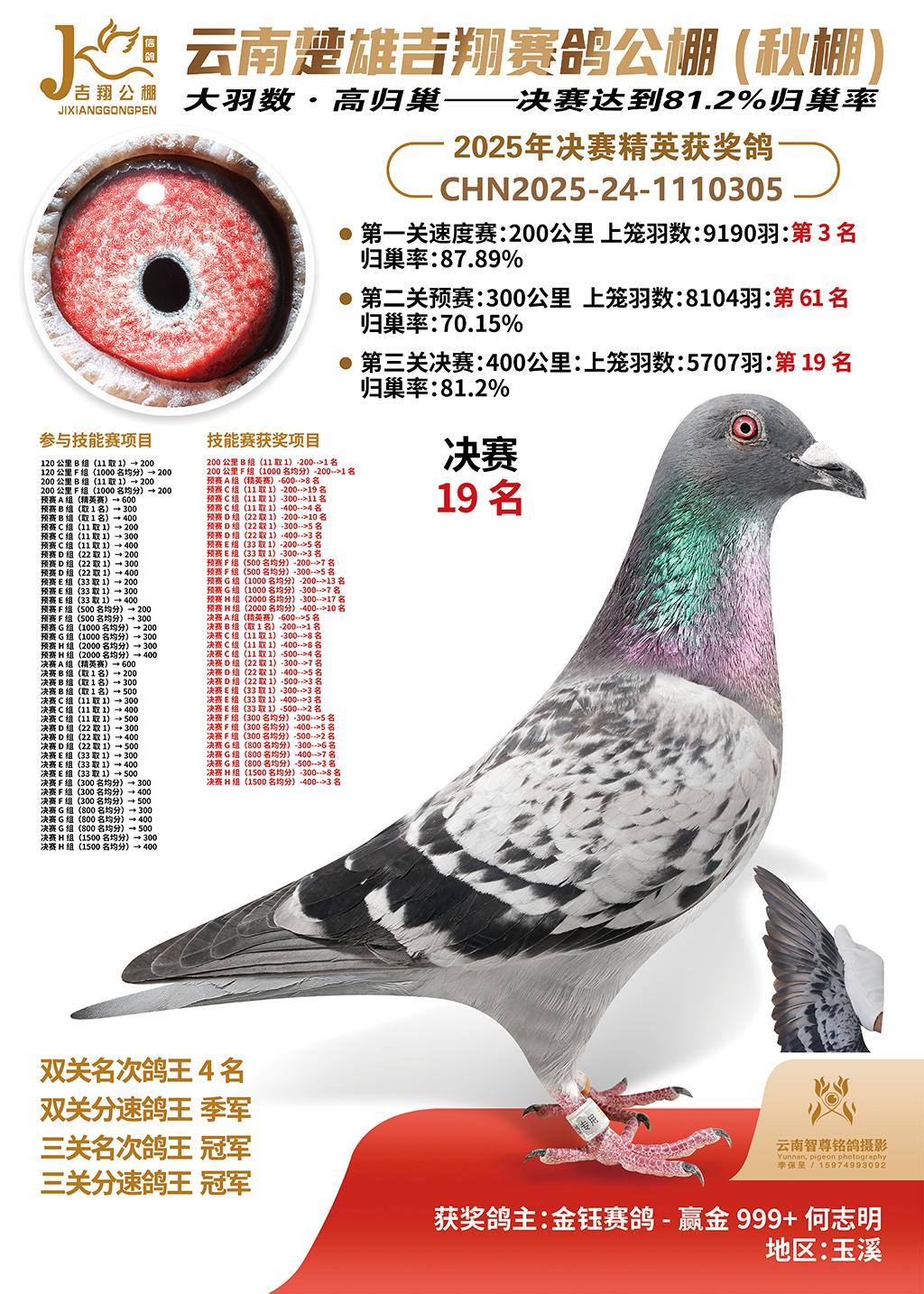 | 鸽主姓名 | 金钰赛鸽-赢金999+何志明 |