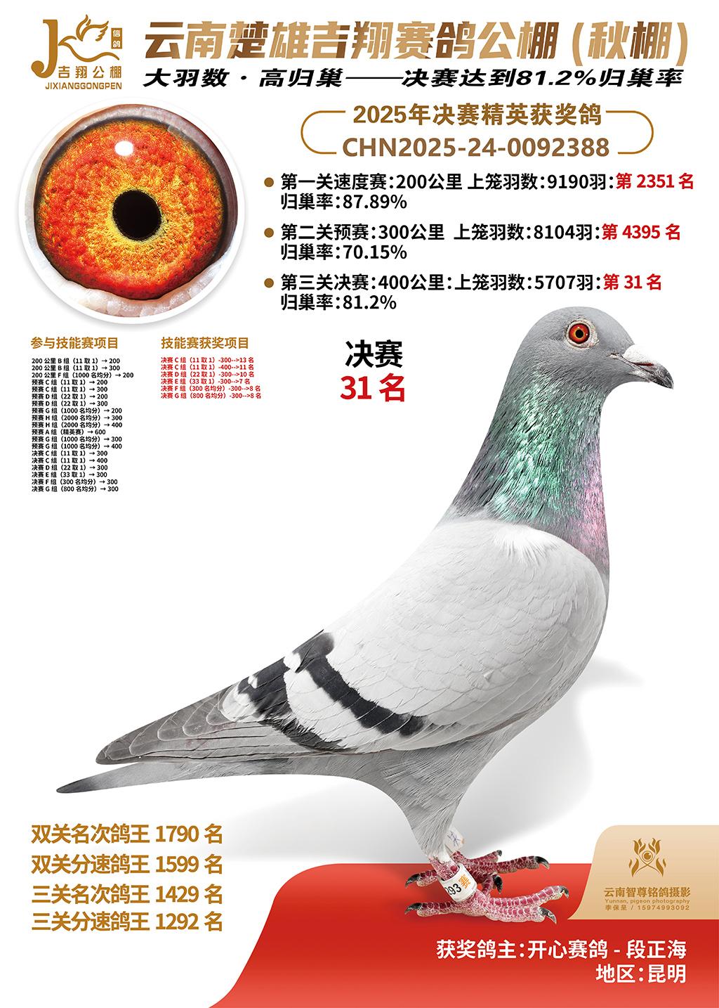 | 鸽主姓名 | 开心赛鸽-段正海 |