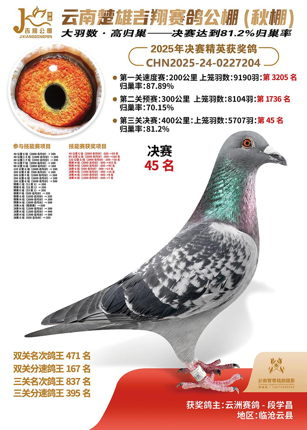 | 鸽主姓名 | 云洲赛鸽-段学昌 |