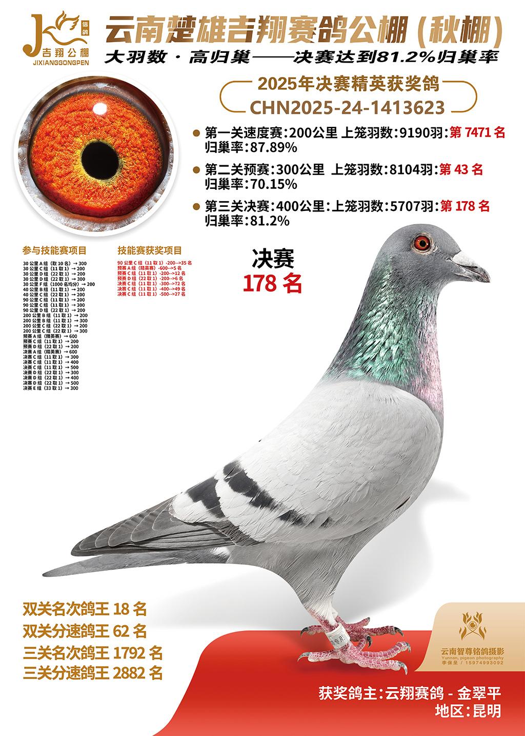 | 鸽主姓名 | 云翔赛鸽-金翠平 |