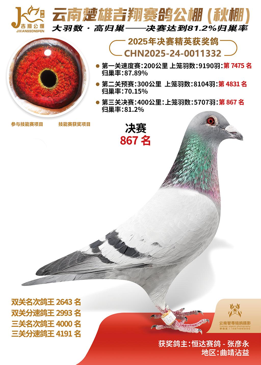 | 鸽主姓名 | 恒达赛鸽-张彦永 |