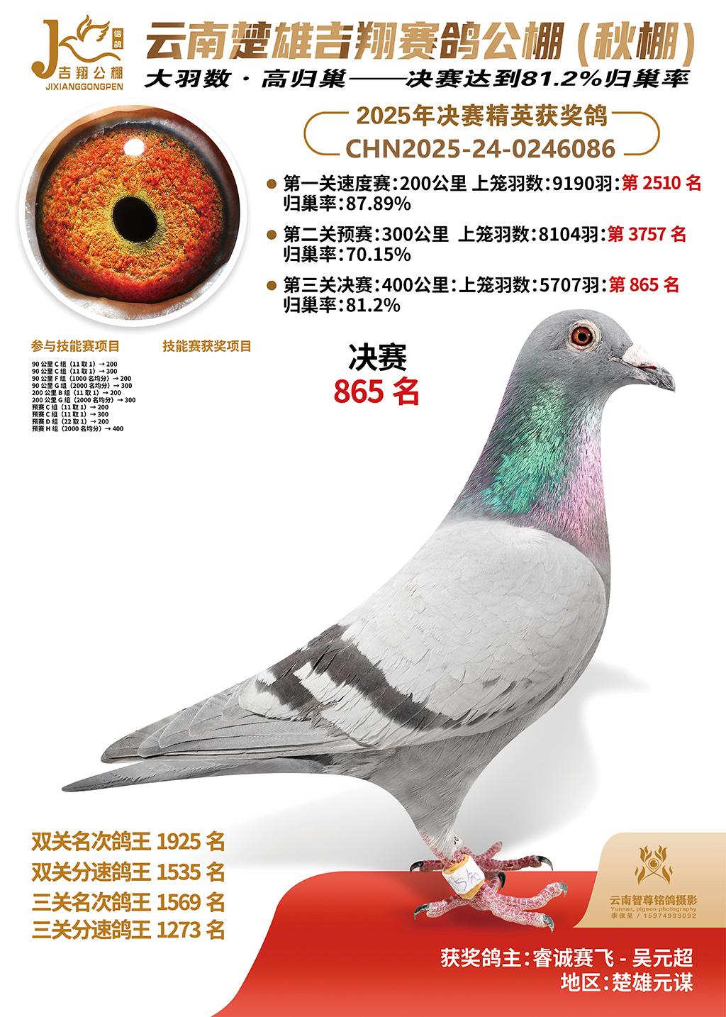 | 鸽主姓名 | 睿诚赛飞-吴元超 |