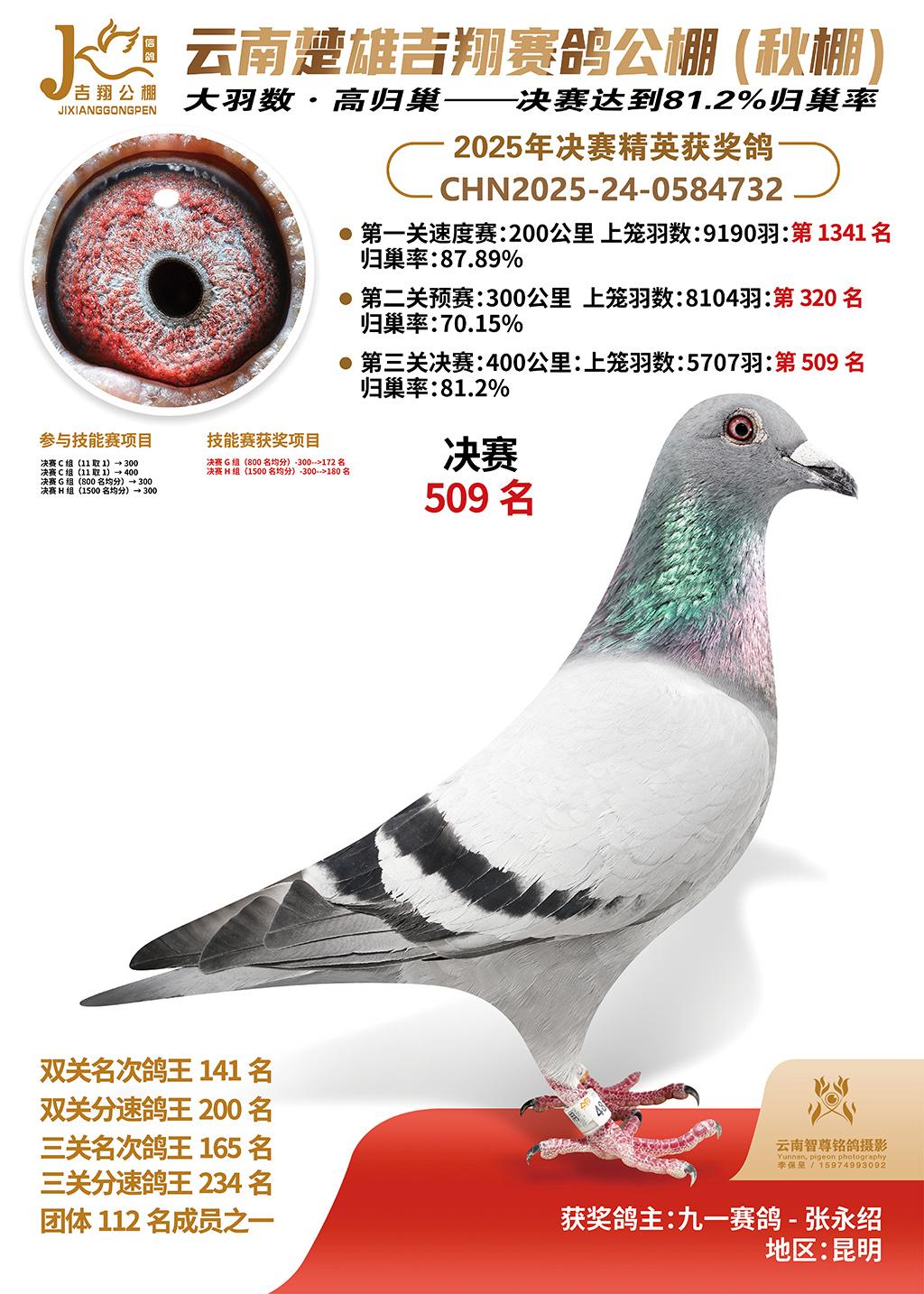 | 鸽主姓名 | 九一赛鸽-张永绍 |
