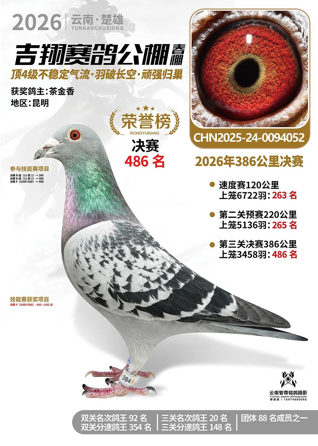 楚雄吉翔公棚(春棚)2026年386公里决赛获奖鸽欣赏