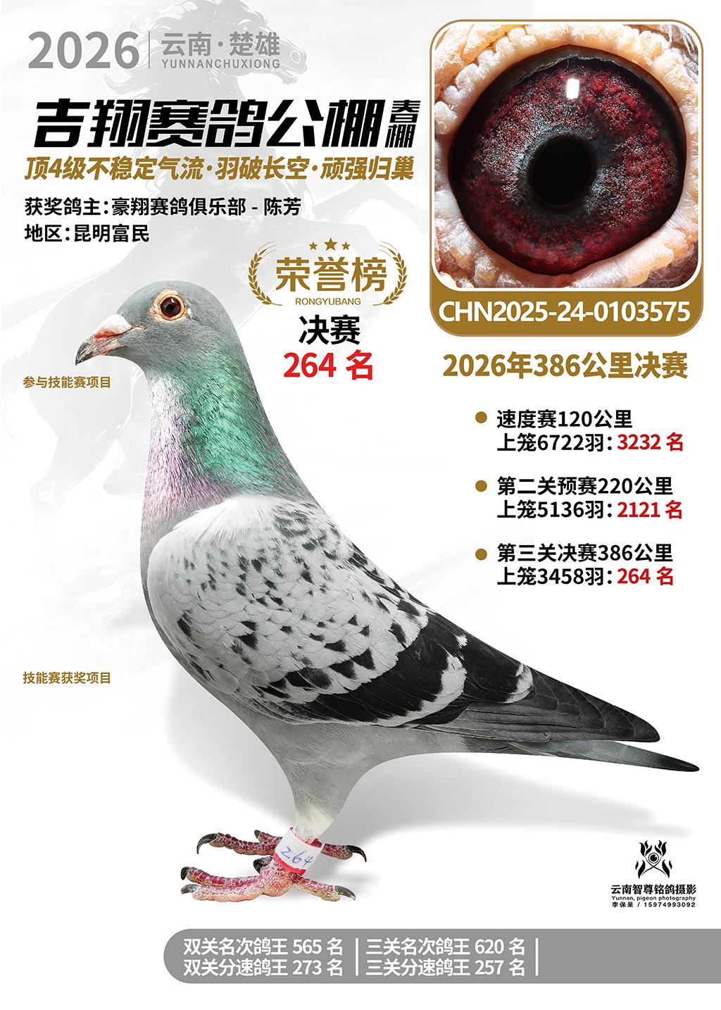 楚雄吉翔公棚(春棚)2026年386公里决赛获奖鸽欣赏
