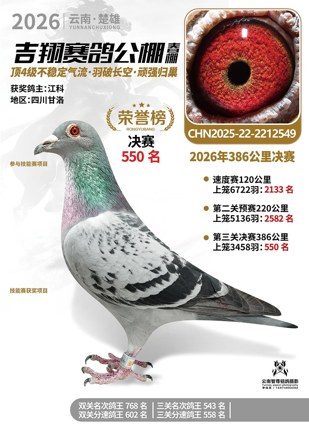 楚雄吉翔公棚(春棚)2026年386公里决赛获奖鸽欣赏