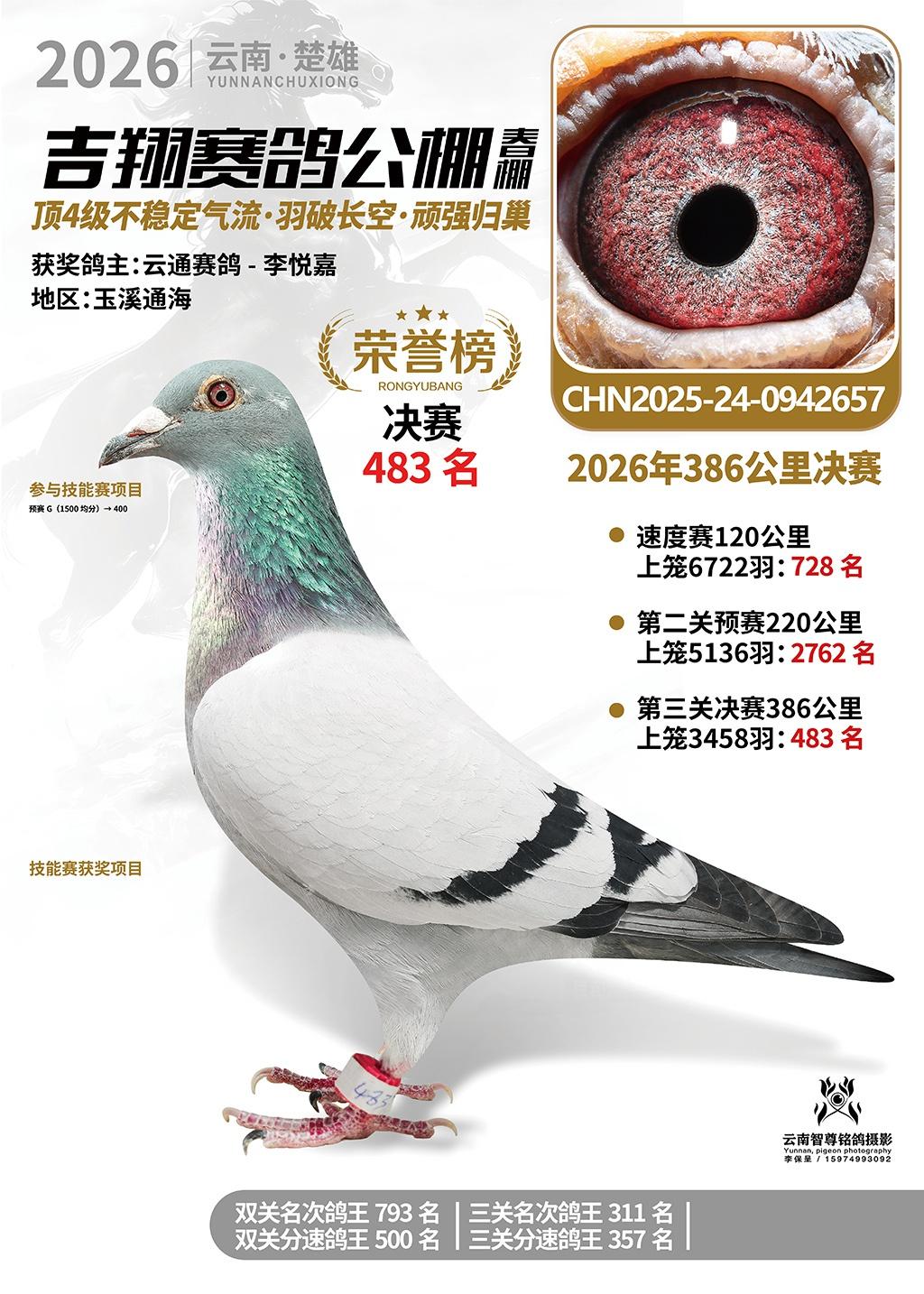 楚雄吉翔公棚(春棚)2026年386公里决赛获奖鸽欣赏