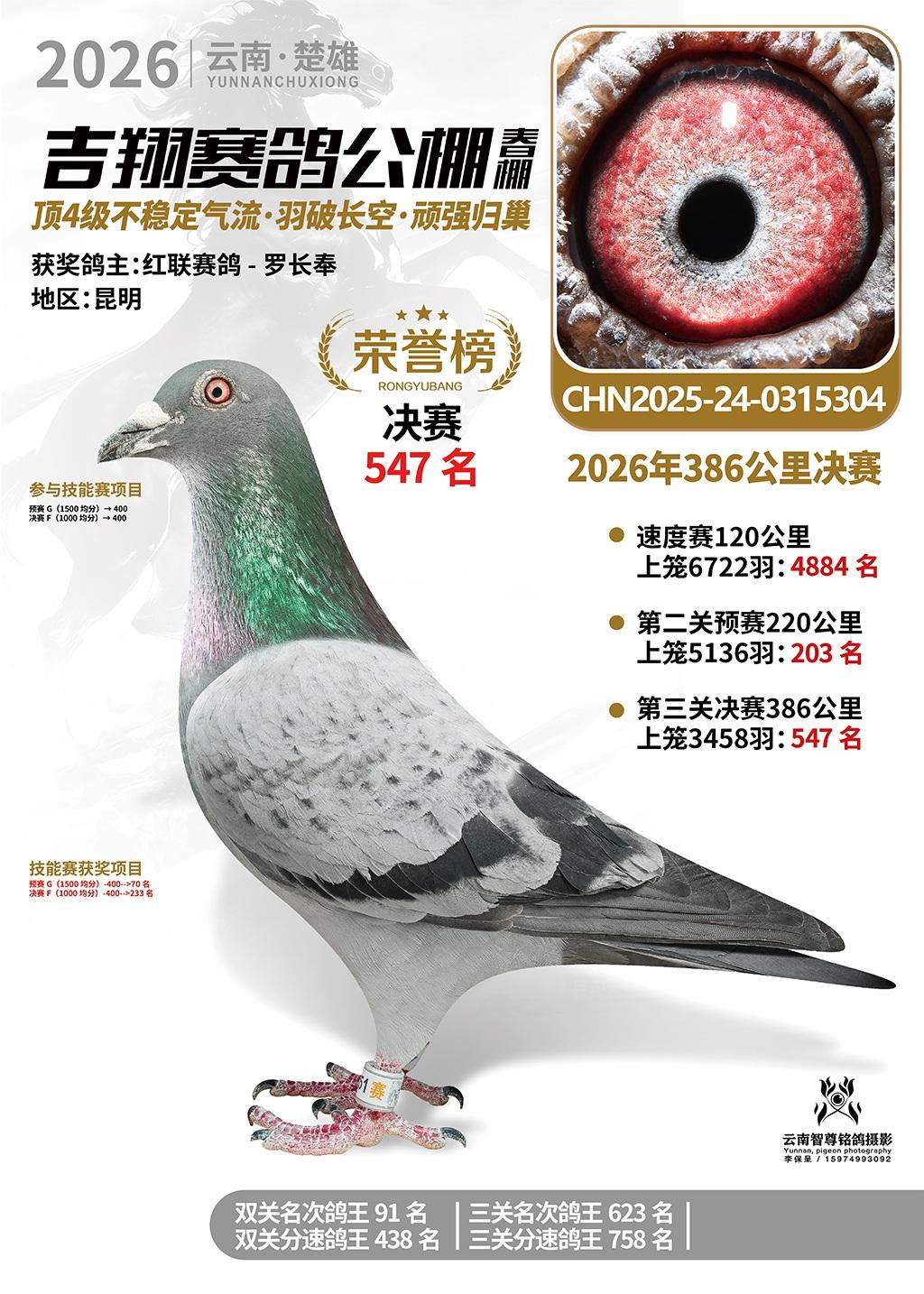 楚雄吉翔公棚(春棚)2026年386公里决赛获奖鸽欣赏