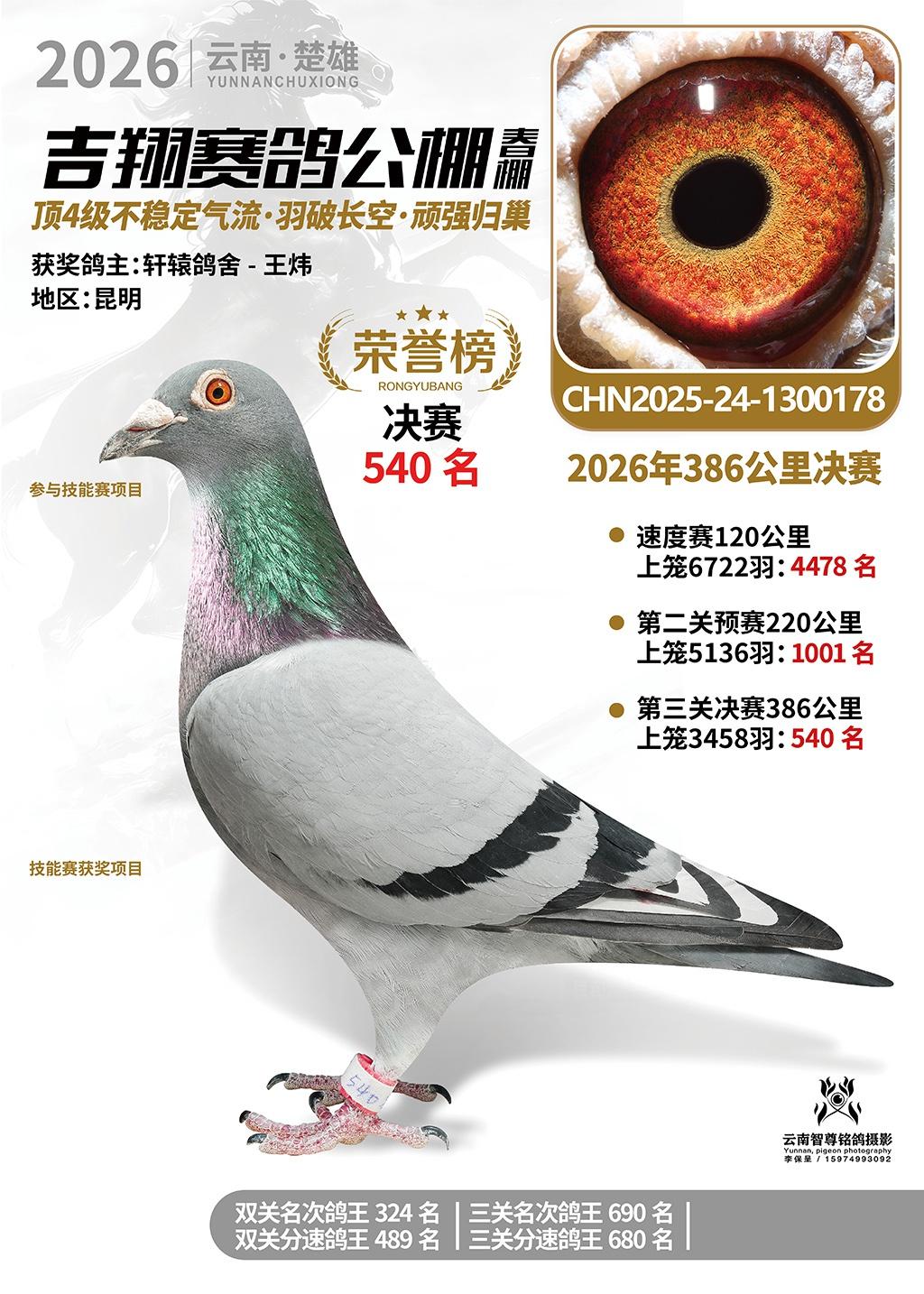 楚雄吉翔公棚(春棚)2026年386公里决赛获奖鸽欣赏