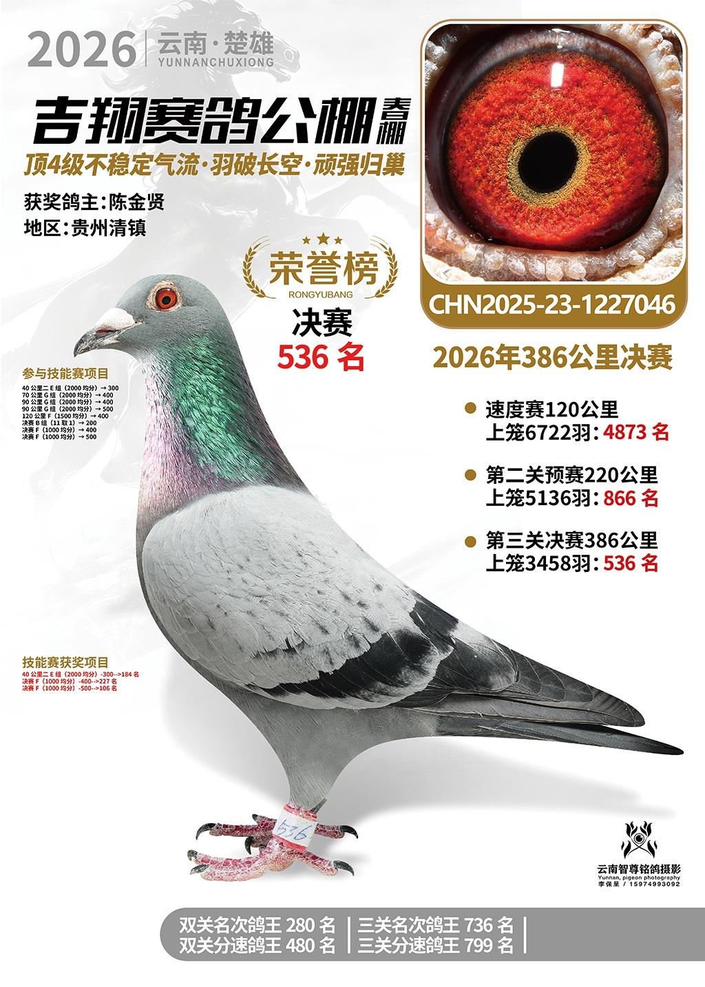 楚雄吉翔公棚(春棚)2026年386公里决赛获奖鸽欣赏