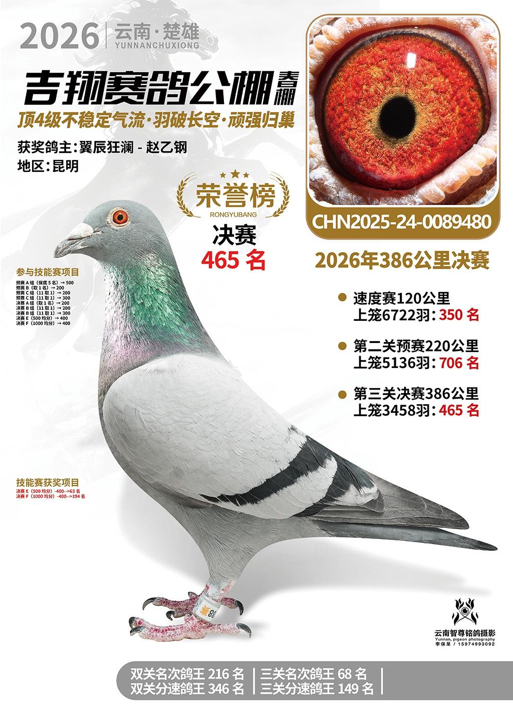 楚雄吉翔公棚(春棚)2026年386公里决赛获奖鸽欣赏