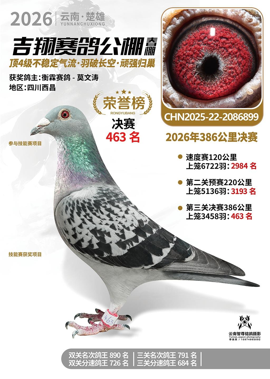 楚雄吉翔公棚(春棚)2026年386公里决赛获奖鸽欣赏