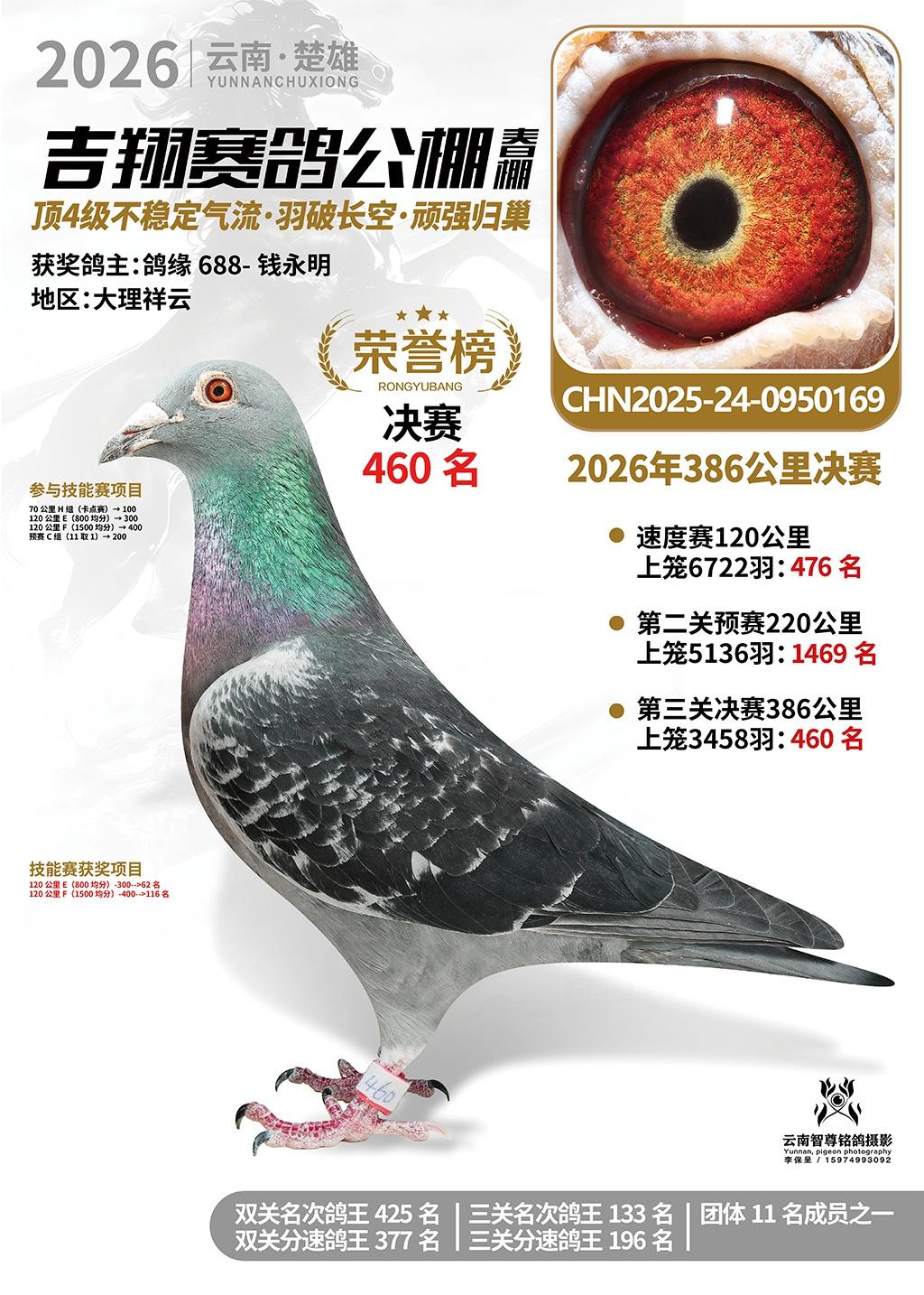 楚雄吉翔公棚(春棚)2026年386公里决赛获奖鸽欣赏