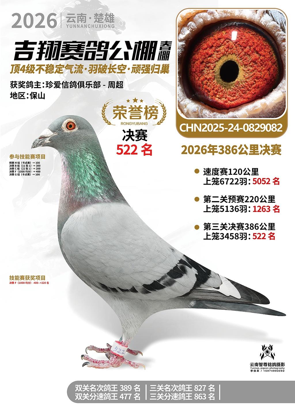 楚雄吉翔公棚(春棚)2026年386公里决赛获奖鸽欣赏