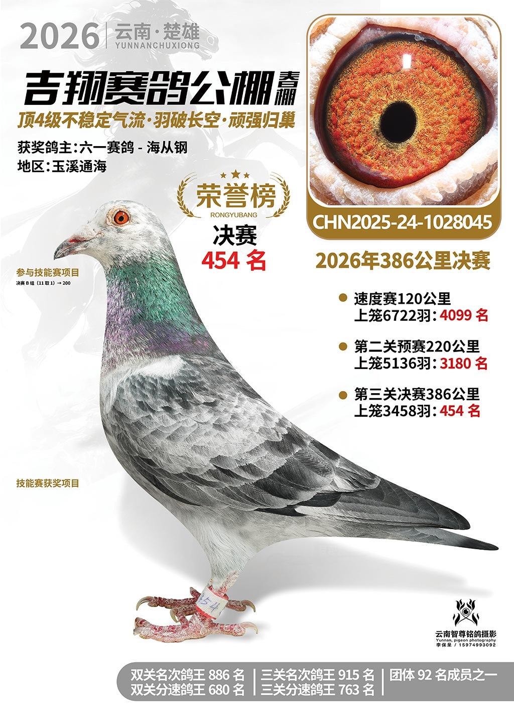 楚雄吉翔公棚(春棚)2026年386公里决赛获奖鸽欣赏