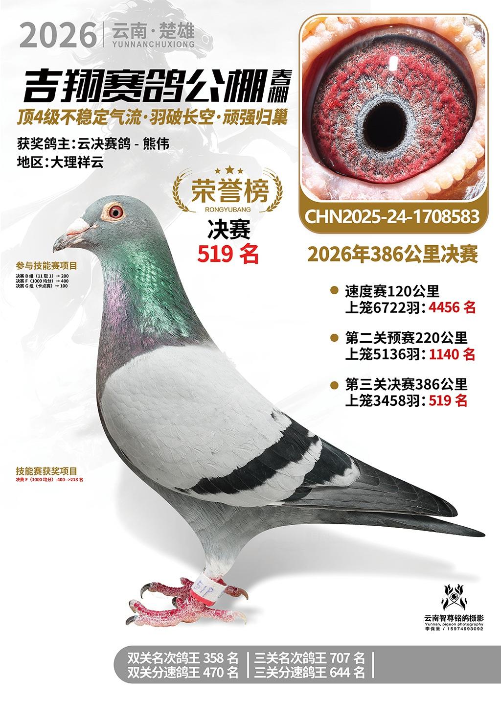 楚雄吉翔公棚(春棚)2026年386公里决赛获奖鸽欣赏