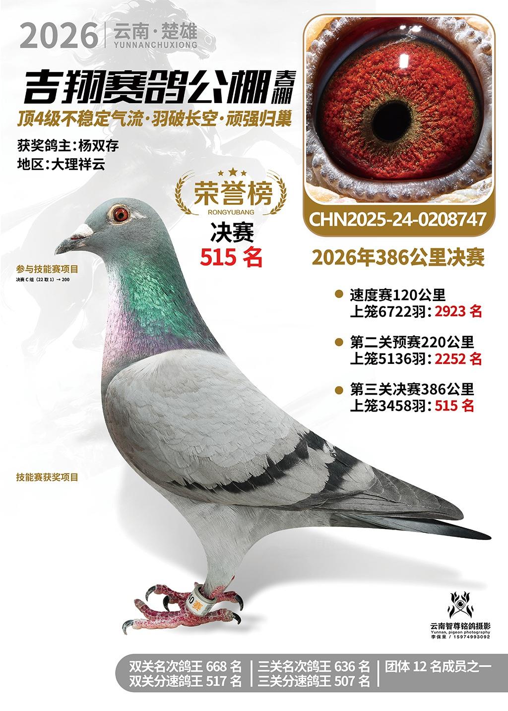 楚雄吉翔公棚(春棚)2026年386公里决赛获奖鸽欣赏