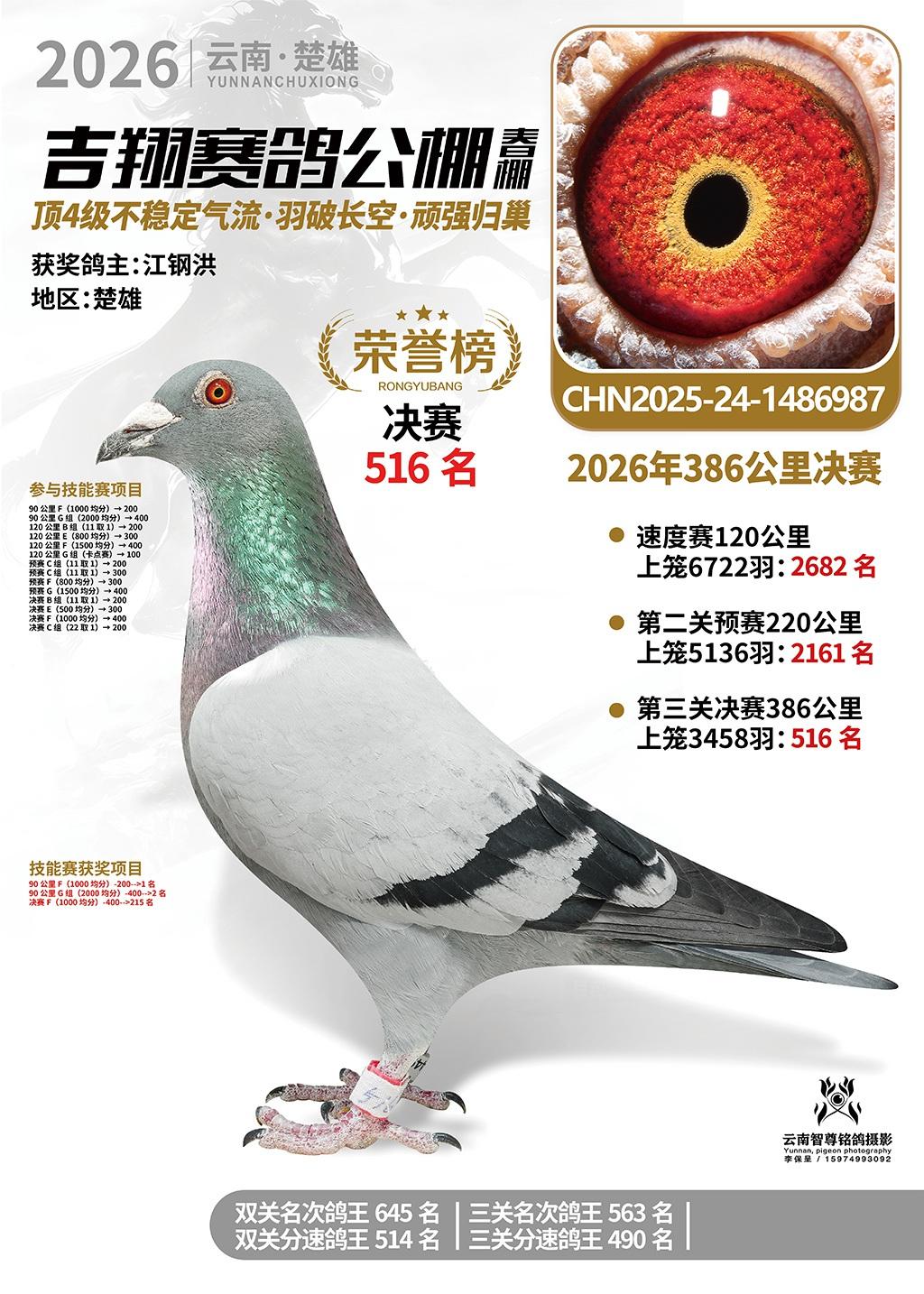 楚雄吉翔公棚(春棚)2026年386公里决赛获奖鸽欣赏