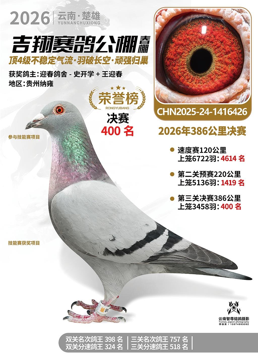 楚雄吉翔公棚(春棚)2026年386公里决赛获奖鸽欣赏