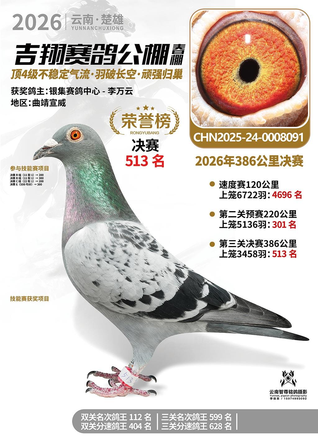 楚雄吉翔公棚(春棚)2026年386公里决赛获奖鸽欣赏