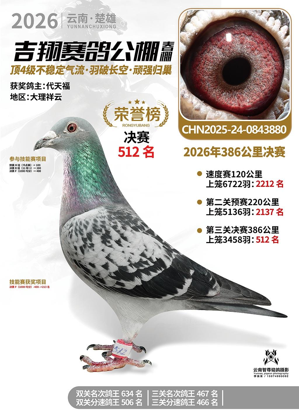 楚雄吉翔公棚(春棚)2026年386公里决赛获奖鸽欣赏