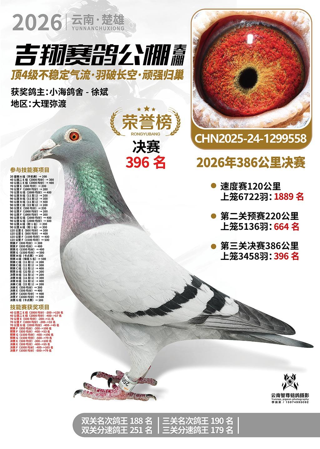 楚雄吉翔公棚(春棚)2026年386公里决赛获奖鸽欣赏