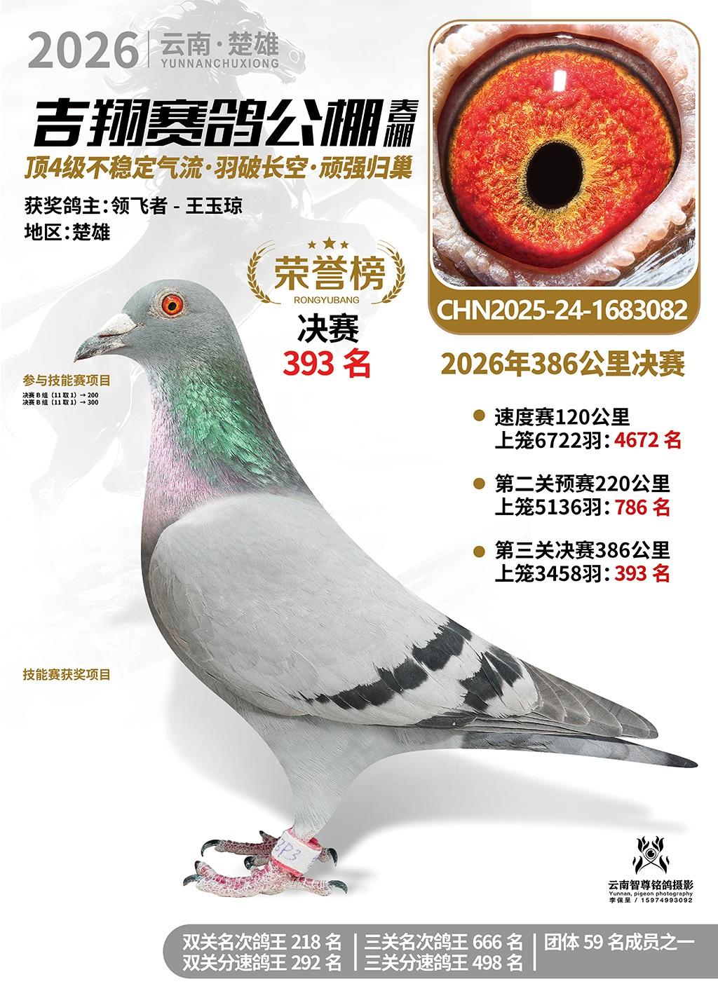 楚雄吉翔公棚(春棚)2026年386公里决赛获奖鸽欣赏