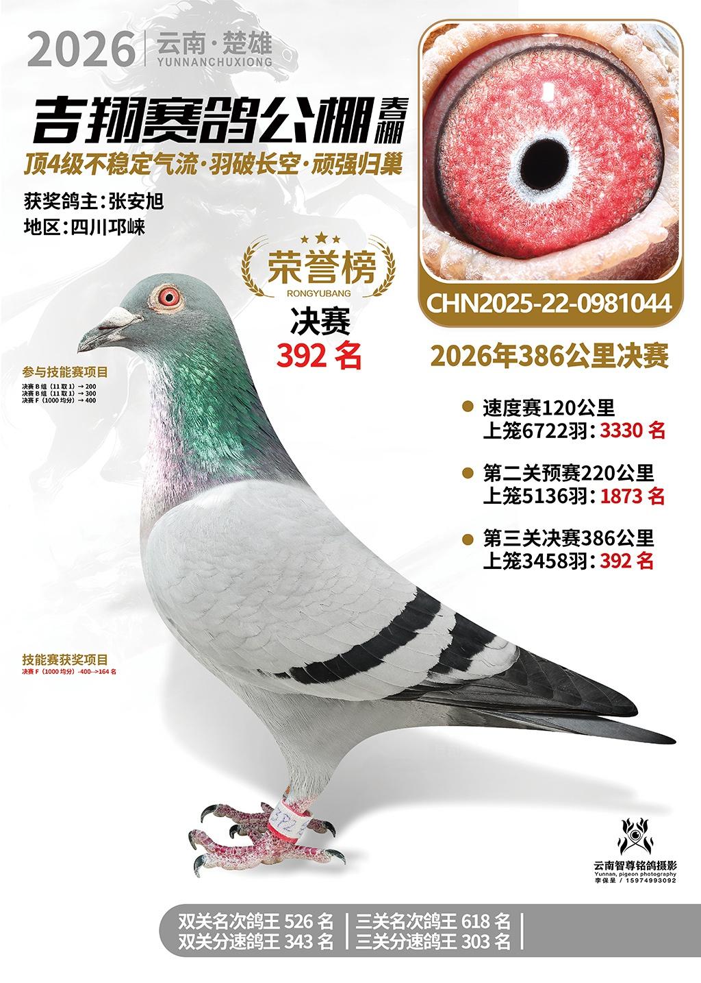 楚雄吉翔公棚(春棚)2026年386公里决赛获奖鸽欣赏