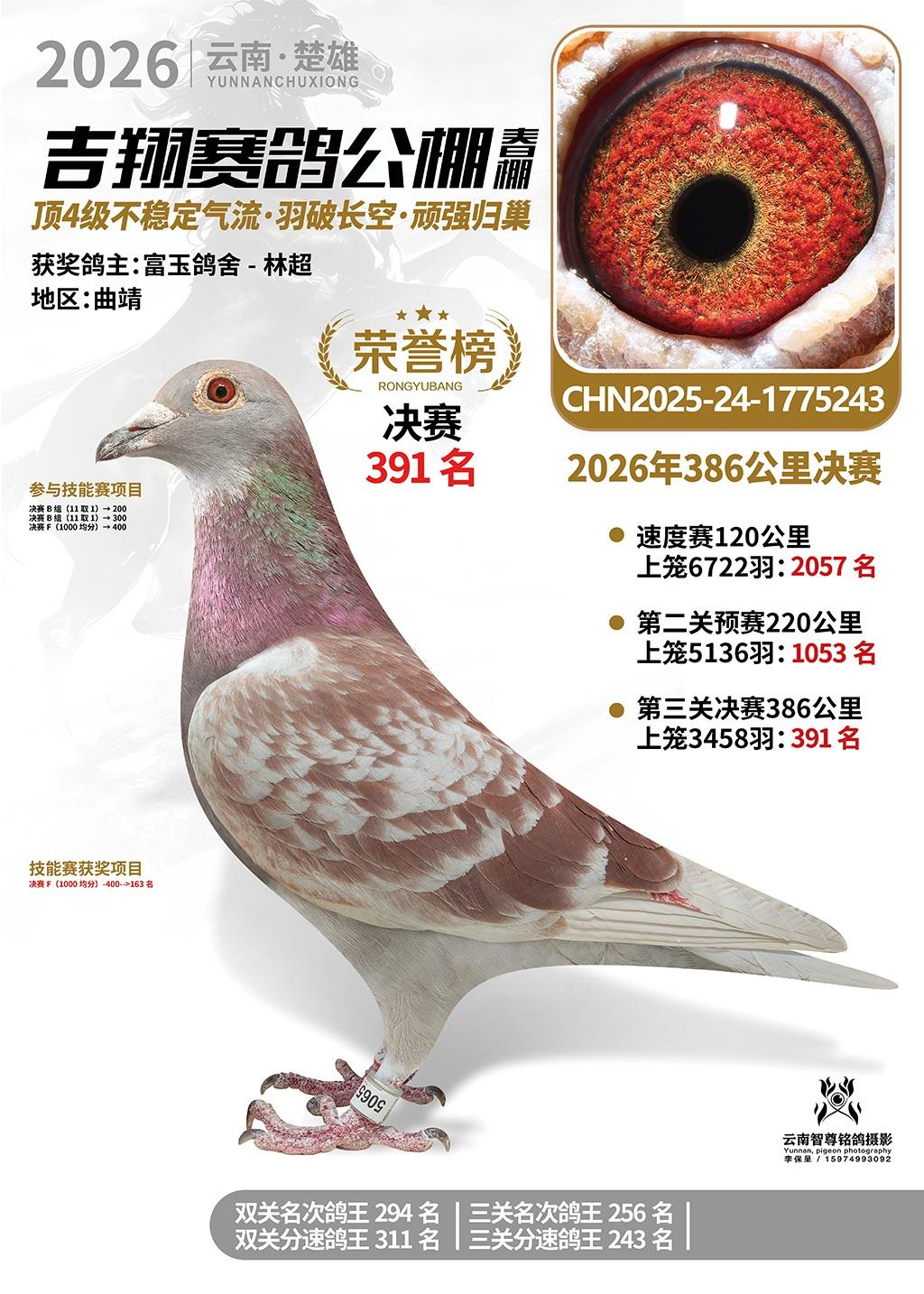 楚雄吉翔公棚(春棚)2026年386公里决赛获奖鸽欣赏