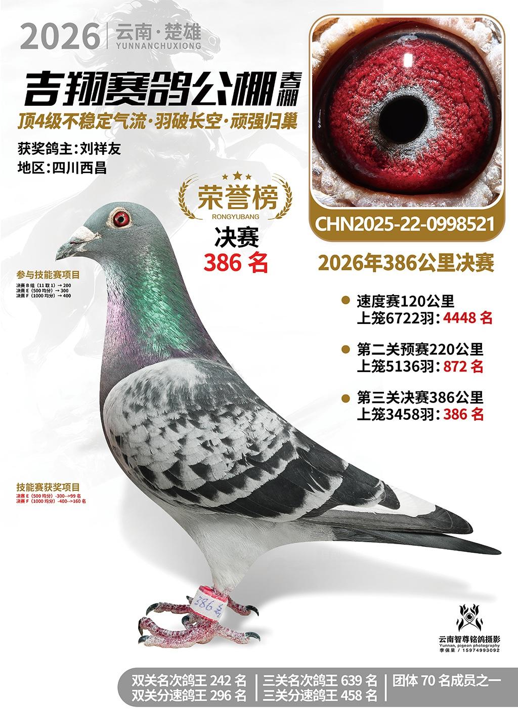 楚雄吉翔公棚(春棚)2026年386公里决赛获奖鸽欣赏