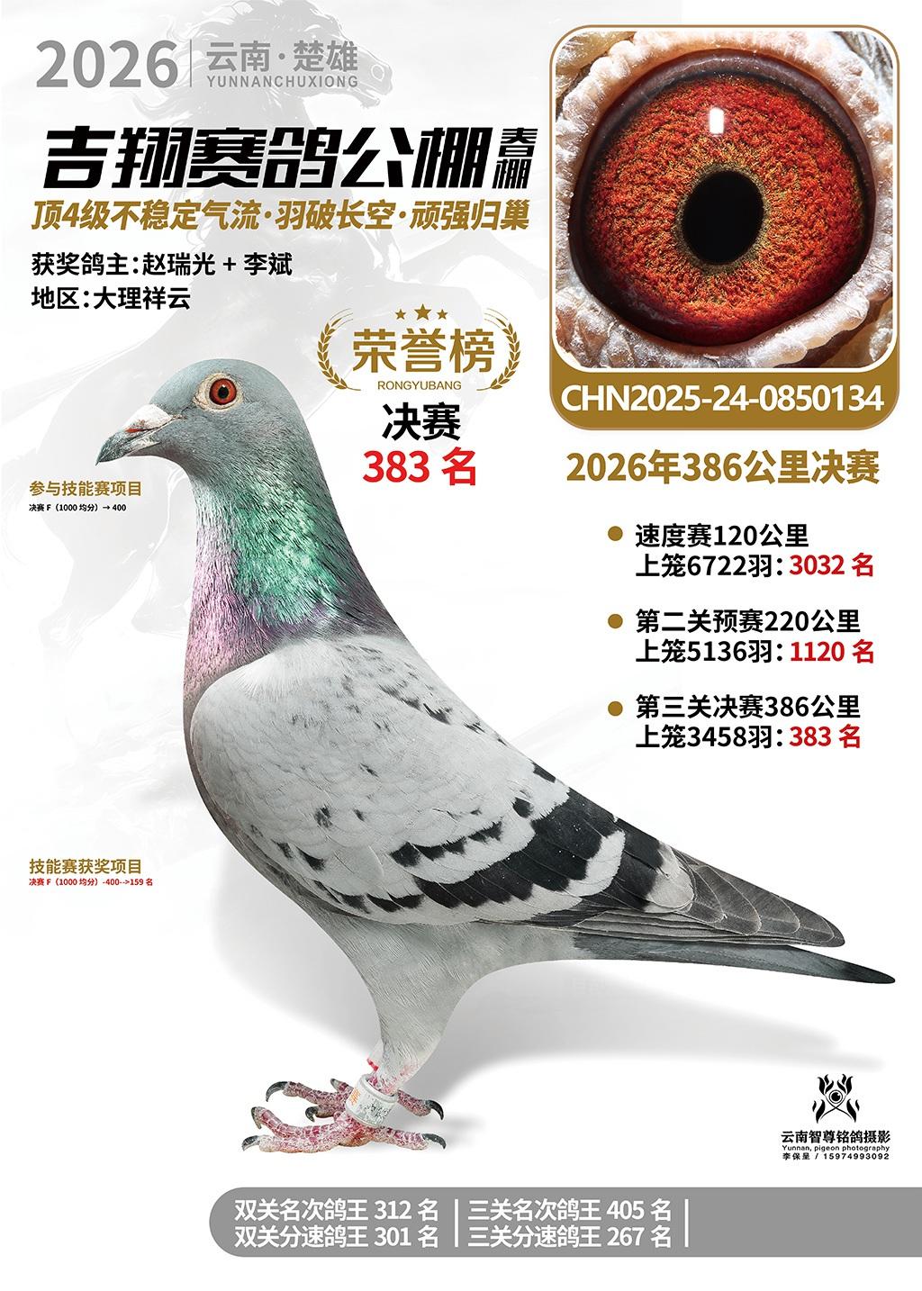 楚雄吉翔公棚(春棚)2026年386公里决赛获奖鸽欣赏