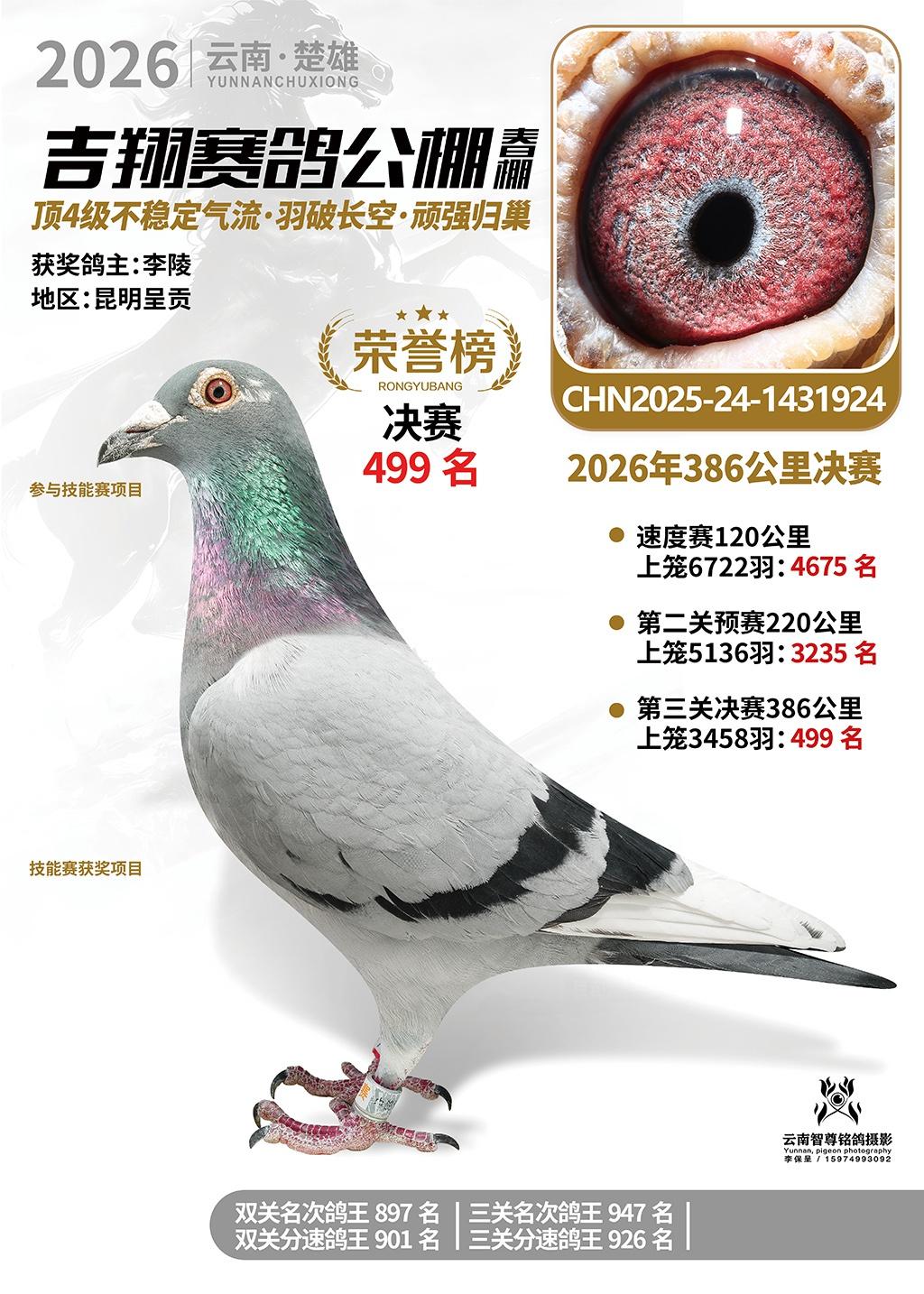 楚雄吉翔公棚(春棚)2026年386公里决赛获奖鸽欣赏