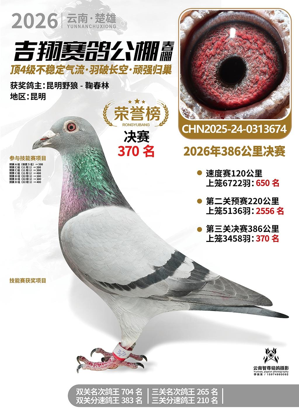 楚雄吉翔公棚(春棚)2026年386公里决赛获奖鸽欣赏