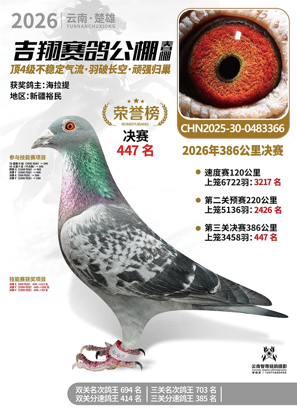 楚雄吉翔公棚(春棚)2026年386公里决赛获奖鸽欣赏